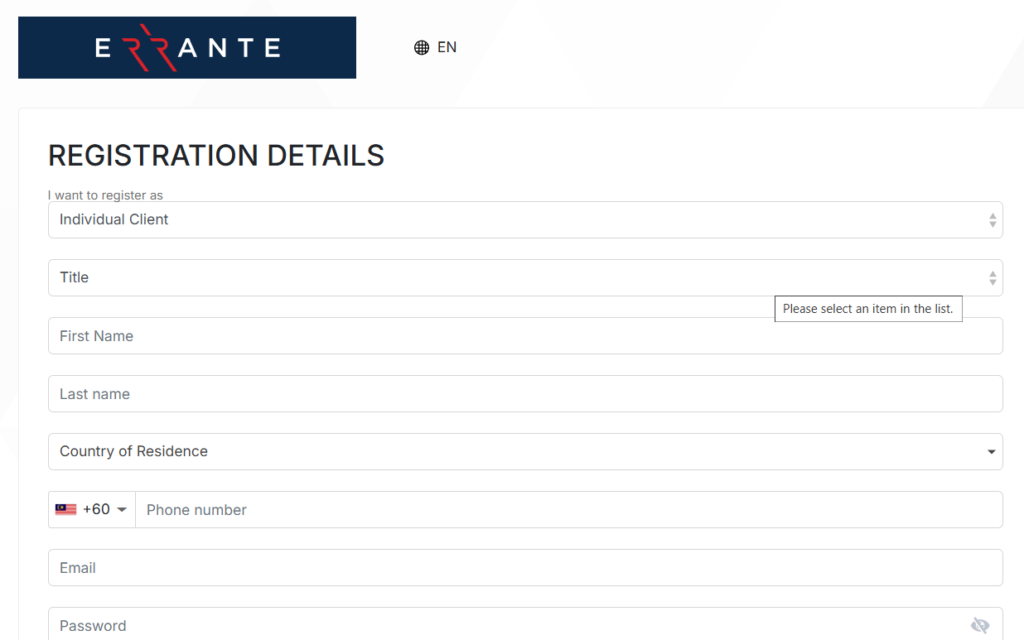 Untuk pendaftaran akaun Trading Errante sangat lah mudah. Click link dibawah
